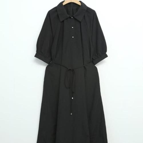 [다잇템]여성 혁대 카라넥 베이직 롱 치마 슬릿 원피스 (42845701A)