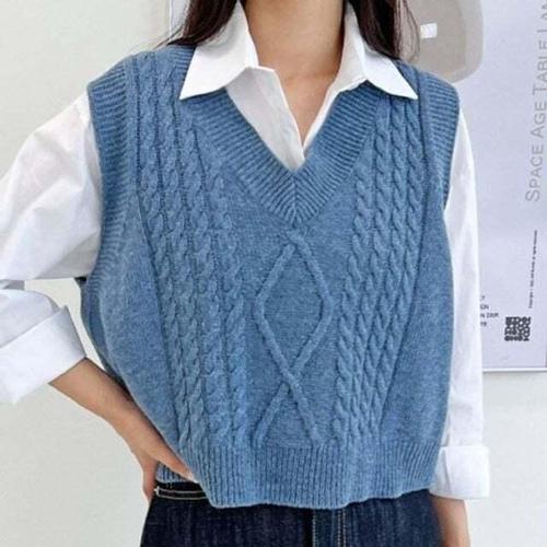 [셀럽하우스]여성 EVLM5842 인기 루즈 니트 조끼 감성 베이직 여자 니트 베