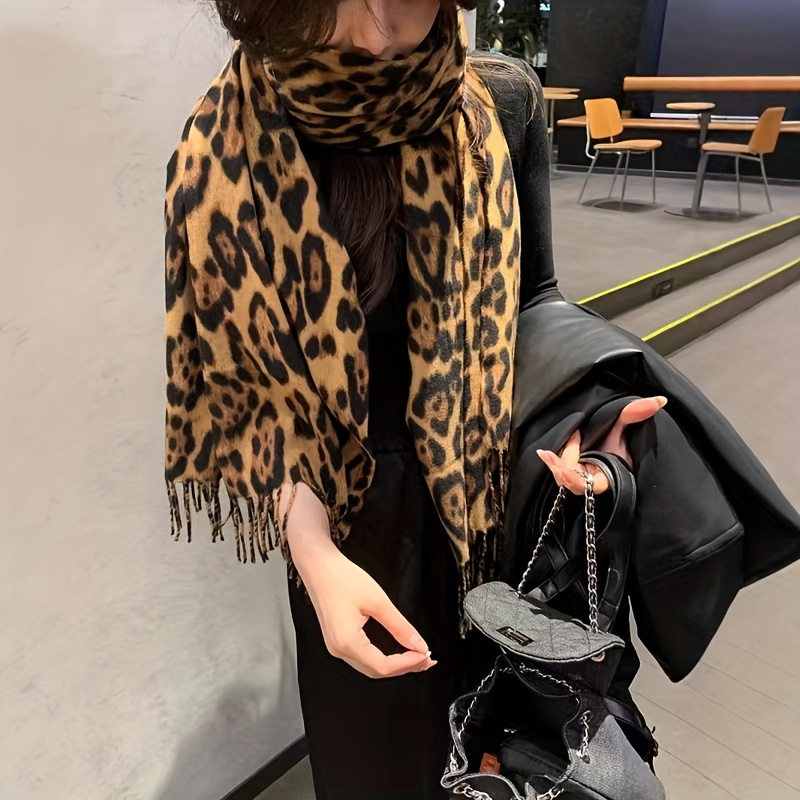 TEMU 프린트 스카프 - 부드럽고 따뜻한 겨울용 방풍 쇼울 칼라 프린지 태슬, 베이지/브라운/블랙/화이트/그레이/ - 캐주얼 & 포멀 의상용 우아한 랩 목걸이 액세서리, 크리스마스 & 할로윈 선물|목걸이