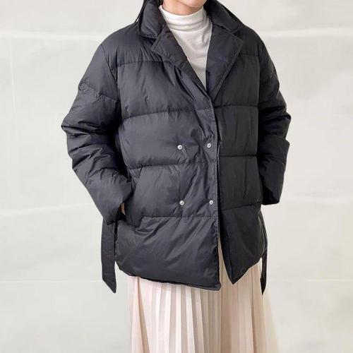 [옷자락]여성 겨울 구스다운 리본 스트랩 벨트 카라 블랙 패딩 재킷