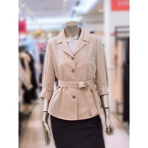 체인지쉬(change she)여성 브이넥 벨티드 정장핏 반팔 자켓 심플 블라우스