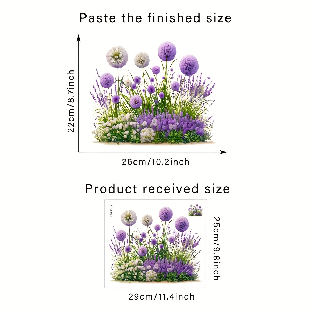 TEMU 1개 진한 보라색 코네플로우와 라벤더 정원 장면 PVC 창문 스티커 - 자가 접착, 재사용 가능, 양면 보기가 가능한 디자인 - 거실, 침실, 주방, 욕실에 적합 - 가정 장식 및 개인화에 이상적, 창문 스티커 | 자연을 영감으로 한 장식 | 쉽게 설치 가능한 장식, 꽃 장식