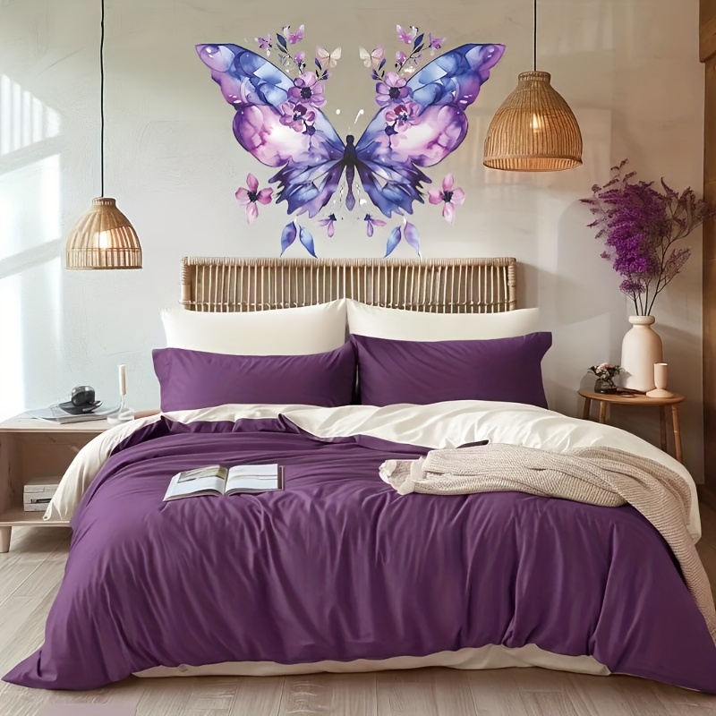 TEMU 탈착 가능한 보라색 나비와 꽃 벽 스티커 | 침실, 거실 및 사무실용 자체 접착 플라스틱 아트 | 다양한 색상의 꽃 디자인과 보라색 꽃 | 크리스마스, 할로윈, 추수감사절 및 새해 장식에 이상적, 거실 예술 | 꽃 벽 스티커 | 내구성 있는 플라스틱, 나비 장식