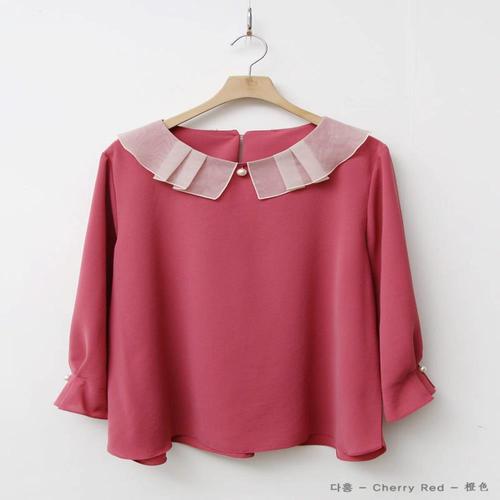 [VY] 여자 보라 프릴 카라 다홍 SS 프렌치 블라우스