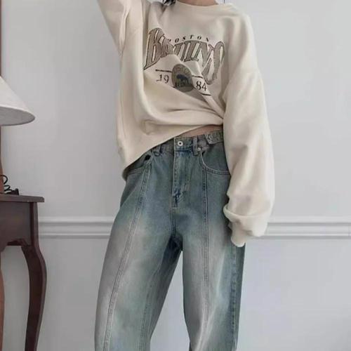 여성 가을 캐주얼 보스턴 레터링 맨투맨 티셔츠 박스티 TS0918루즈핏 오버핏 여자 빅사이즈