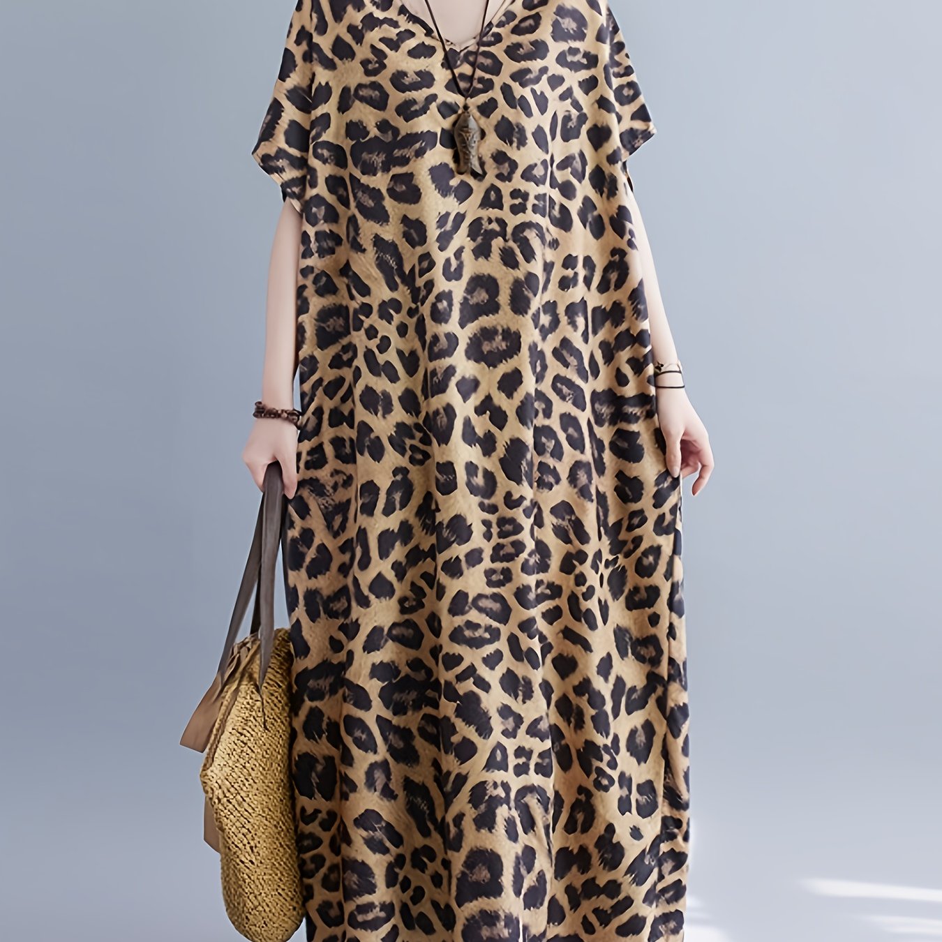 TEMU 프린트 맥시 드레스 | 신축성 없는 원단, 포켓 디테일, 캐주얼 출퇴근 및 휴가에 적합, 발렌타인데이 및 어버이날 선물로 완벽