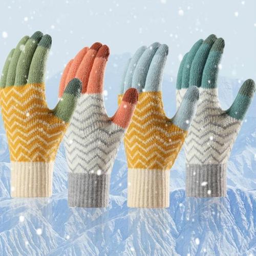 [셀러에이드]눈꽃 기모 이중 보온 니트 털장갑
