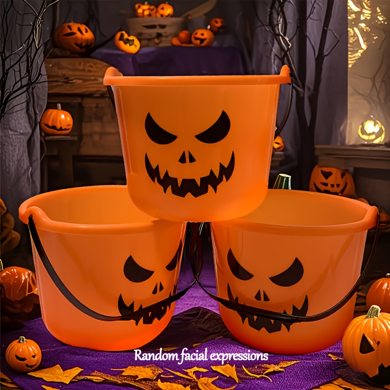 TEMU 3개 세트 할로윈 호박 트릭-트릿 버킷, 손잡이 있는 플라스틱 호박 바구니, 할로윈 파티 선물용, 악마 유쾌한 얼굴 디자인, 트릭-트릿 파티 장식
