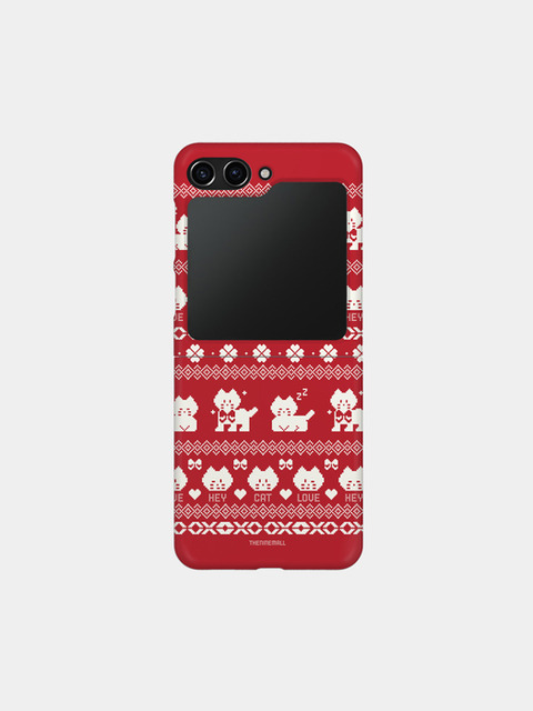 [더나인몰] hey cat knit pattern Z플립 하드케이스
