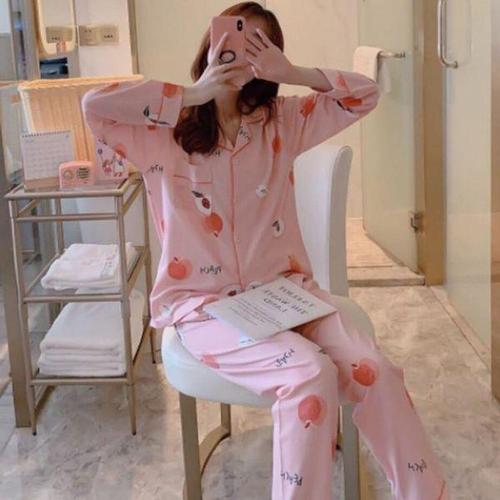 복숭아 파자마 잠옷세트 여성 겨울 수면 상하의 세트