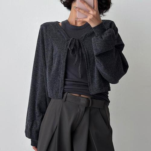 Destijl HC06 숏짧은 크롭 부드럽고 깔끔한 다이아 라운드 니트티형 가디건 D2533cd01