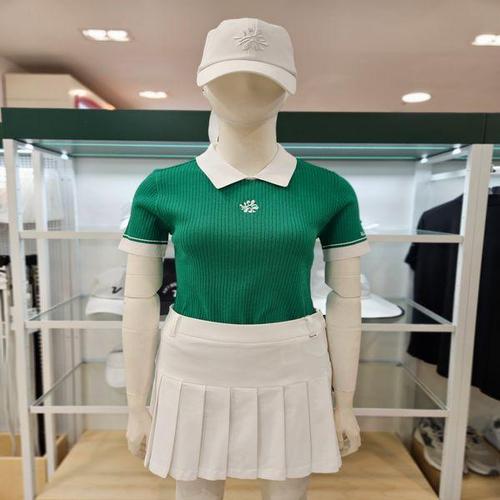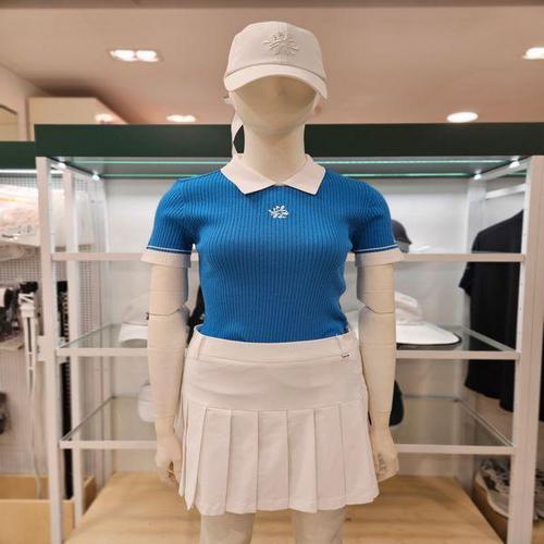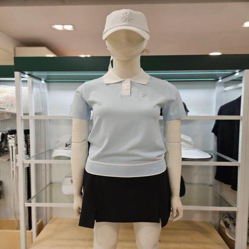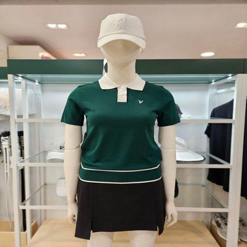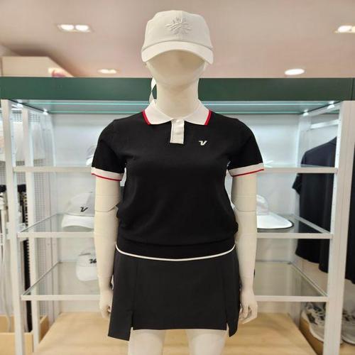 [볼빅]여성골프 에리배색 골지 반팔니트 VLKTP303