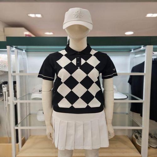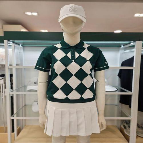 [볼빅]여성골프 아가일 패턴 반팔니트 VLKTQ491