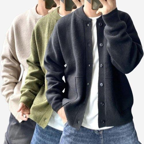 니트 가을 봄 무지 남성 깔끔한 가디건 라운드넥