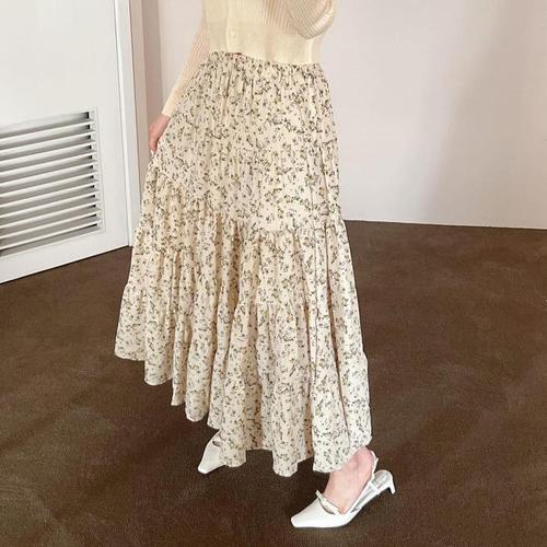 [브이와이][VY] 여자 꽃무늬 봄데이트룩 캉캉스커트 귀여운 롱스커트_16093366_588847