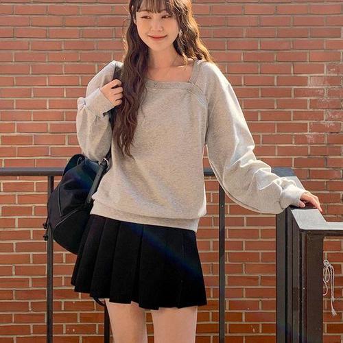 [신상오픈런]원숄더맨투맨 여리핏 블루종 여성스웨트셔츠 봄긴팔티