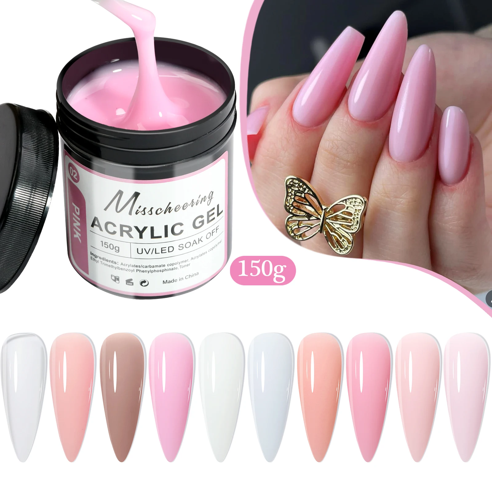 150g 대용량 네일 확장 젤 아크릴 반영구적 UV/LED 젤 광택 DIY 디자인 네일 아트 확장 도구에 적합
