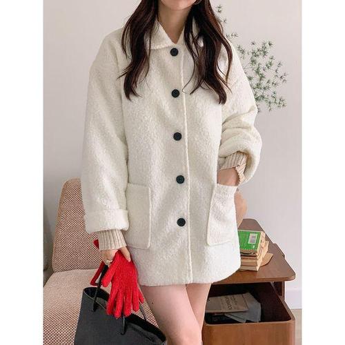 [옷자락]여성 겨울 뽀글이 카라 하프코트 투포켓 부클단추