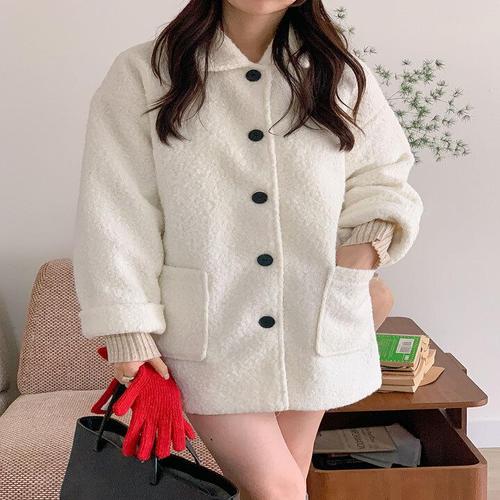 [옷자락] 여성 겨울 뽀글이 카라 하프코트 투포켓 부클단추