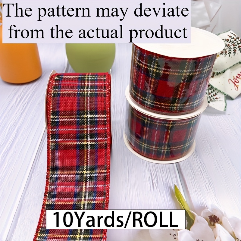 TEMU 10야드 레드 & 블랙 체크 리본 (와이어 엣지) - 와이드 스트립 (63.5mm/2.5" 폭) 폴리에스터 원단, 크리스마스, 할로윈, 부활절 선물 포장, 공예, 장식용