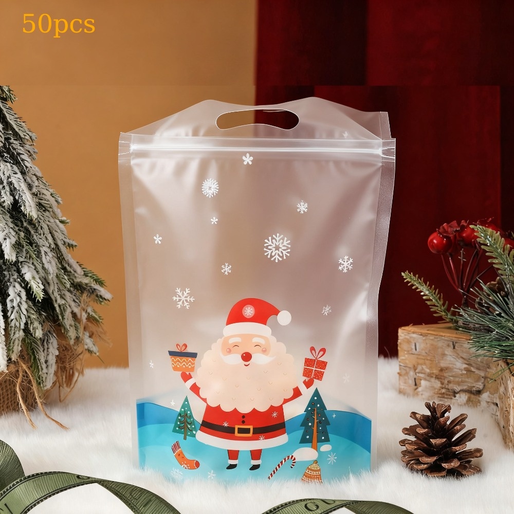 TEMU 50개입 투명 눈꽃 핸들 포장백 - 쿠키, 사탕, 파티 선물용 플라스틱 눈꽃 포장 - 투명한 간식 포장, 크리스마스, 부활절, 결혼식 및 이벤트용 파티 용품
