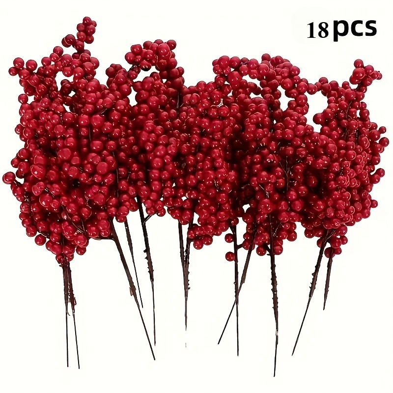 TEMU 18개 클래식 크리스마스 레드 베리 줄기, 다용도 장식, 비포장 PS 폴리스티렌 베리 가지, 가정, 파티, 다양한 방, 공예 및 선물에 적합, 크리스마스, 할로윈, 부활절, 하누카에 이상적