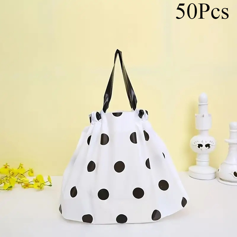 TEMU 50개 검정 & 흰색 물방울 무늬 드로스트링 선물 가방 - 방유, 재사용 가능, 내구성 PE 소재, 생일, 기념일, 부활절 & 어버이날 축하 행사, 소매 포장, 고급 선물 가방, 선물용 선물 가방, 선물 가방