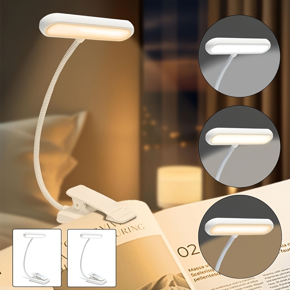 TEMU 삼색 LED 충전식 북 라이트, 소형 경량 클립형 독서등, 3가지 색상 모드 및 10단계 밝기 조절, 구스넥 디자인, 컴팩트하고 휴대 가능, 독서, 사무실 등에 적합, 독서의 최고의 동반자, 책상 액세서리,휴대용 조명,모던 램프,가벼운 램프,에너지 효율적인 LED,튼튼한 클립,조절 가능한 밝기,클립온 라이트,여행자,학생들