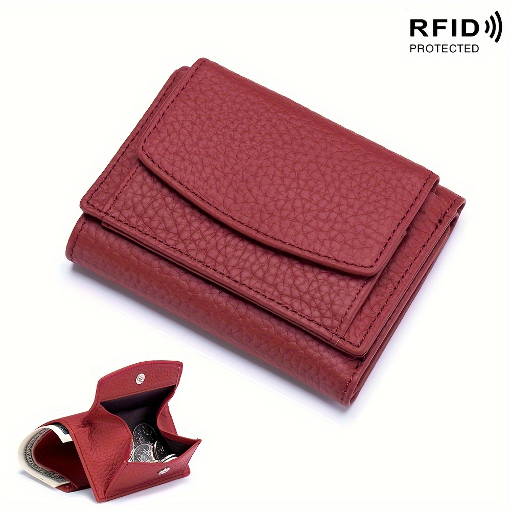 TEMU 진짜 가죽으로 만든 미니 삼중 카드 홀더와 동전 지갑, 상층 소가죽으로 제작된 여성들을 위한 완벽한 선물입니다.