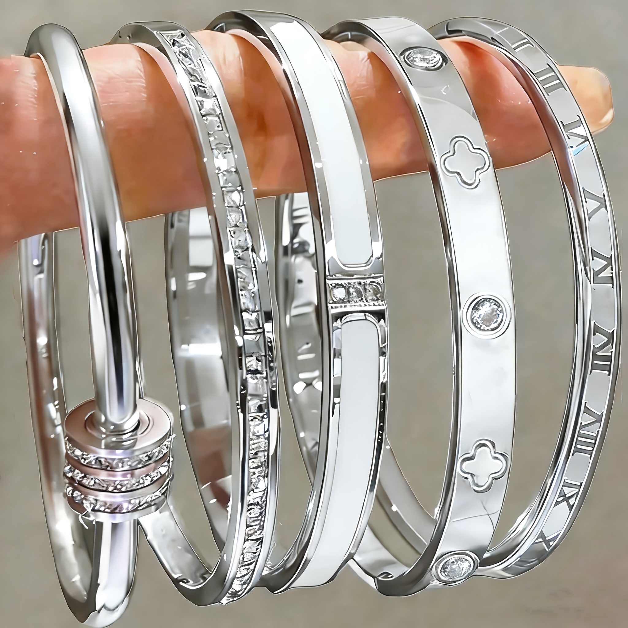 TEMU 여성용 스테인리스 스틸 팔찌 5개 세트, 독특한 디자인, 스타일리시, 멀티 엘레먼트 디자인, 정교한 이상적인 선물, 변색되지 않는 주얼리