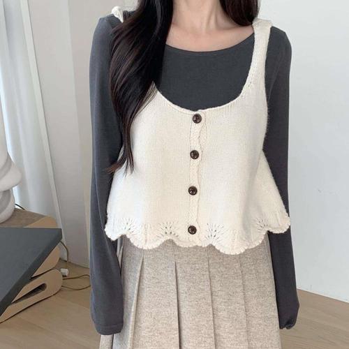 바바 여성 브이넥 반버튼 루즈핏 니트 조끼