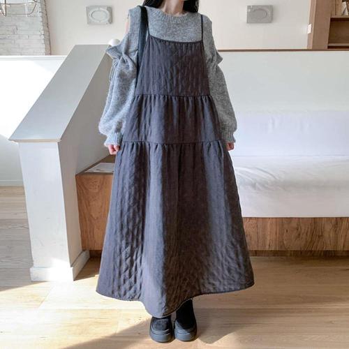 [미라클세븐]여성용 A라인 롱 뷔스티에 끈 나시 드레스