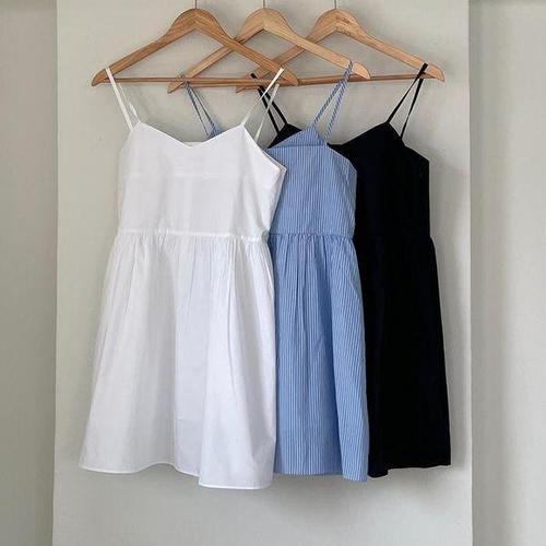 쁘띠엘라 찰랑스판 플리츠 끈나시 롱 원피스 휴양지 뷔스티에 2p