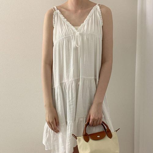 앞뒤착용/1col 네이처 레이어드 도트 리본 쉬폰 뷔스티에 나시 원피스