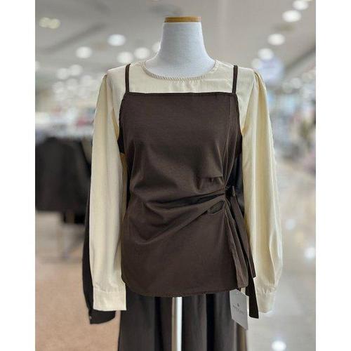 [S~XL]여성 하객룩 데이트룩 레이어드 뷔스티에 긴팔 블라우스 나시 세트 빅사이즈