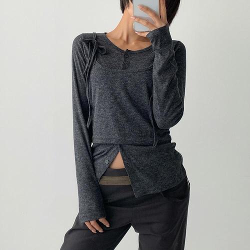 [옷자락]여자 레이어드 리본 뷔스티에 라운드 슬림가디건 세트