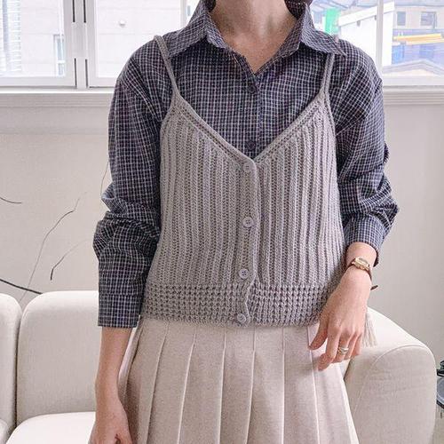[옷자락] 여자 잔체크 셔츠 레이어드 골지 니트 뷔스티에 세트