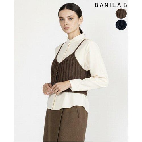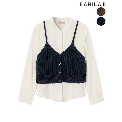 [바닐라비]여성 버튼 니트 뷔스티에 헨리넥 셔츠 세트