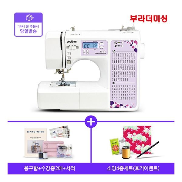 [부라더미싱] [빠른배송] 영문이니셜 스티치 가능한 전자미싱 FS155 (+용구함+수강증+책)
