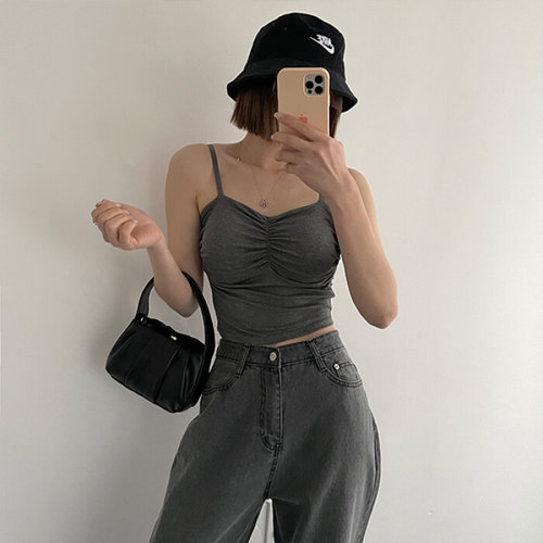 [다잇템]여자 크롭 4컬러 더블 끈 캡 크롭 브라렛 나시