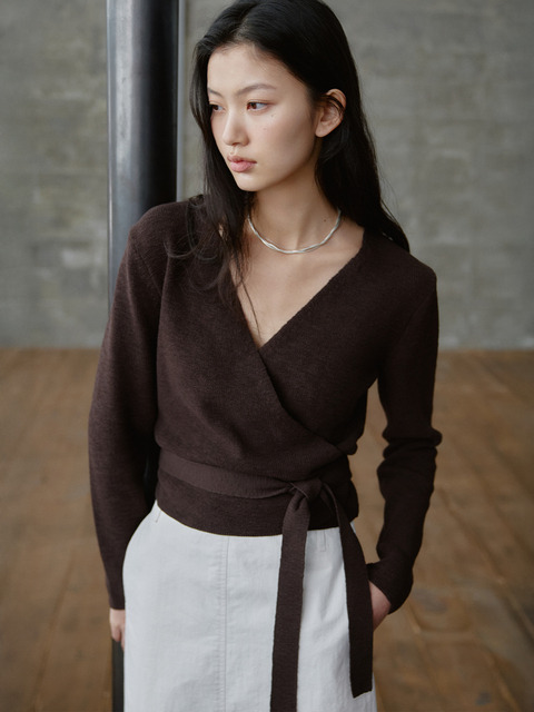 [매넌] 마리엔 써머 코튼 랩 가디건 초코브라운