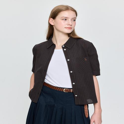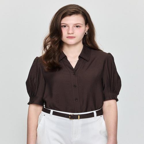 헤지스 여성 [시즌오프][CITY ESSENTIAL] 여름 반팔 셔츠 다크브라운 (HSSH5BP33W3)
