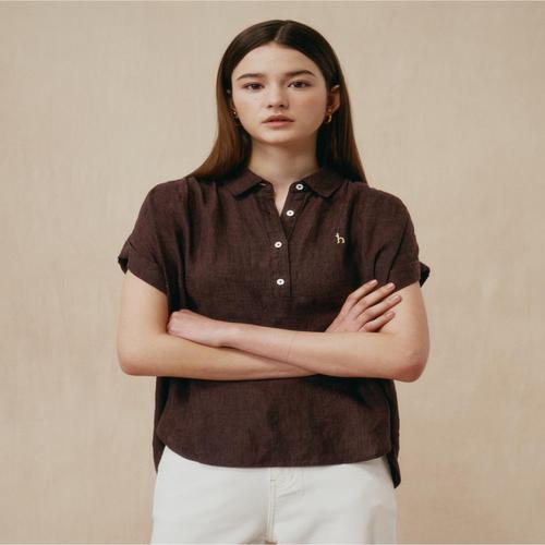 헤지스 여성 린넨 하프 반소매셔츠 브라운 (HSSH5B503W3)