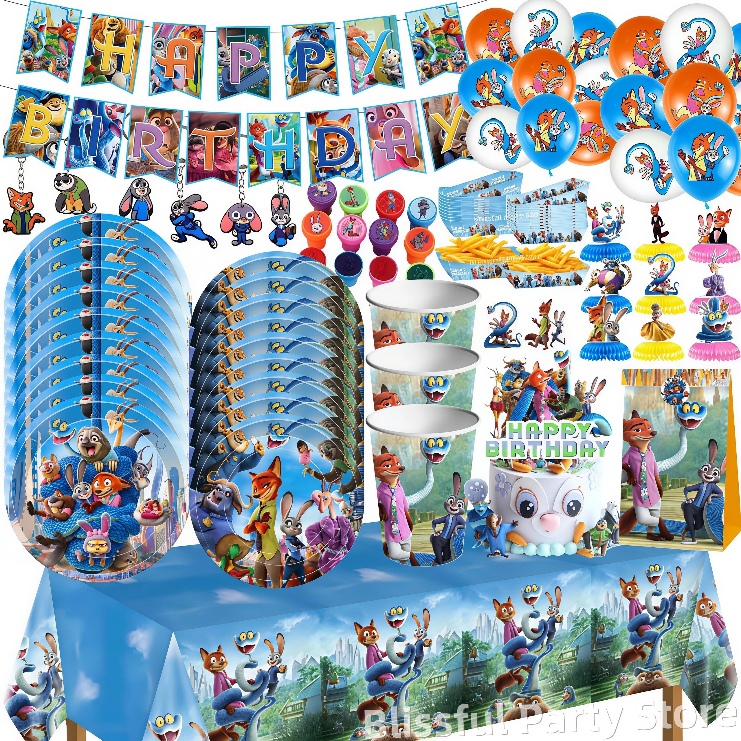 주토피아 2 생일 파티 장식 테이블웨어 키트 컵 접시 주디 닉 풍선 남아 여아 선물 베이비 샤워 파티 용품