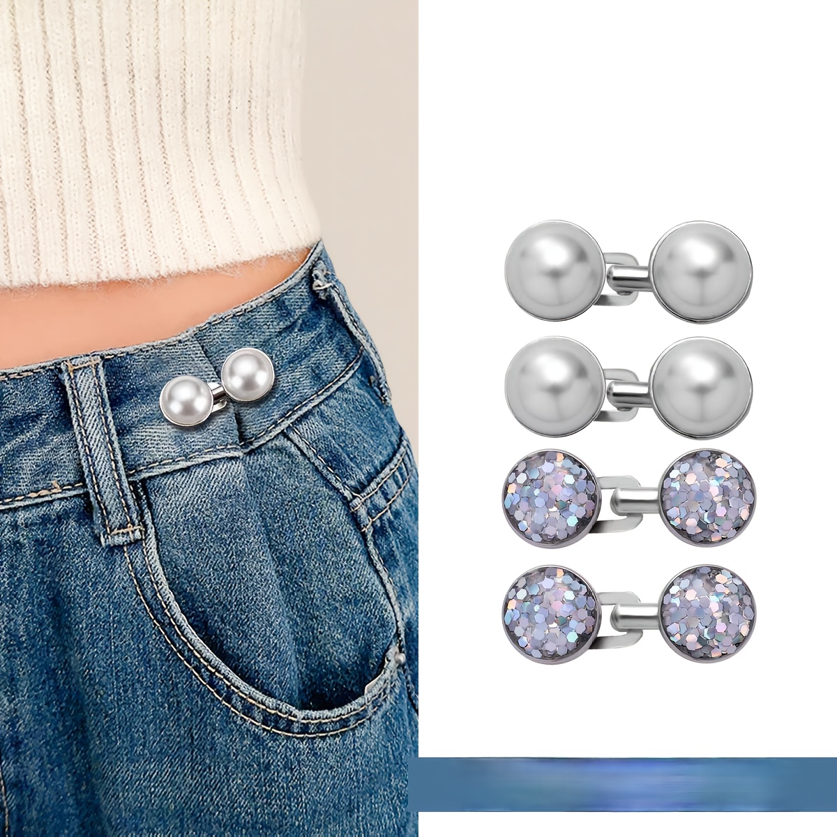 TEMU 여성용 바지 허리 조임기 4세트, 재사용 가능한 조절식 탈부착 허리 클립으로 즉시 매끄러운 디자인이 가능하며, 여성용 넉넉한 청바지, 드레스 및 스커트에 적합