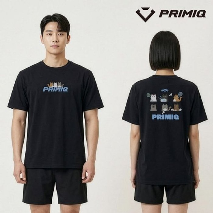 기타브랜드 프리미크 네냥이2 블랙 HCT261207U 남성 여성 반팔 티셔츠