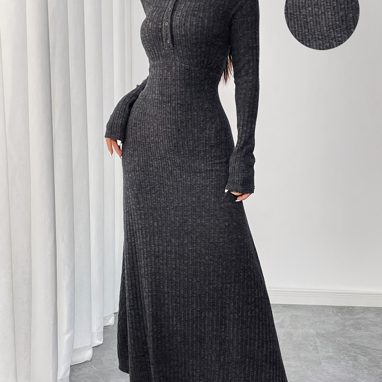 TEMU 우아한 버튼 디테일이 돋보이는 패셔너블 바디콘 드레스, 긴소매 롱드레스 가을 겨울용