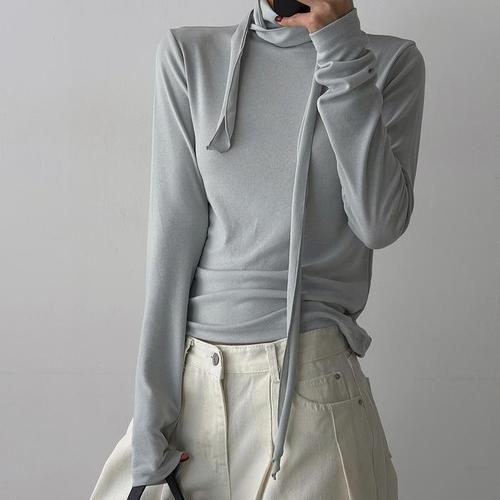 [허밍퍼플]여성용 4507-에나멜 스카프 BL 빅사이즈 긴팔 블라우스 간절기 가을 봄 긴소매 세련미 여성의..