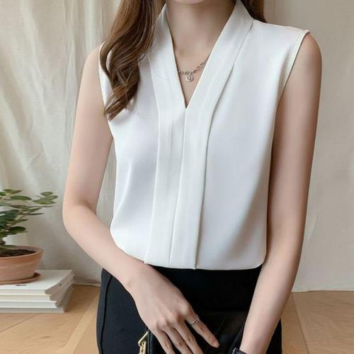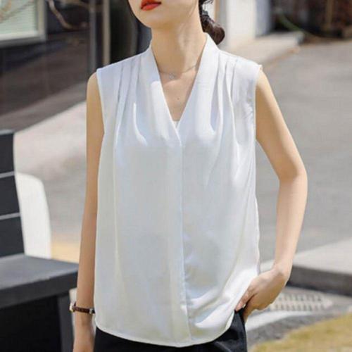 [옷자락]여성 심플 브이넥 민소매 블라우스 데일리 오피스웨어