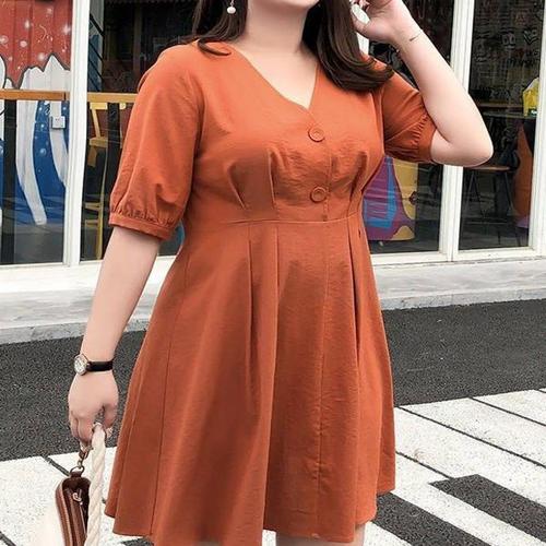 [셀러허브_여성트랜드패션]ONM 버튼 딥 브이넥 면 뷔스티에 원피스 여름 빅사이